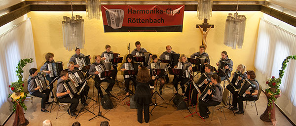 Der Einladung zum diesjährigen Jahreskonzert des Harmonika-Clubs Röttenbach am 6. Juli folgten auch in diesem Jahr wieder viele Fans und Freunde des Vereins. Bei schönem Wetter konnte das Orchester vor vollem Saal spielen.